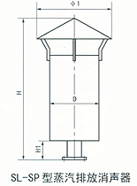 | SQS-SP-6 | 10 | 2.0 | 350 | 30 | 1625 | 150 | 600 | 426 | DN125 PN2.5 |  |  |   注:本系列消声器额定排汽压力按1.3MPa设计的,如排汽压力为0.8MPa,选用消声器应比排放管径大一级选用:排汽压力为2.0MPa时应比排放管小一级选用。
