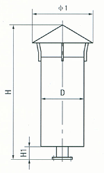 SQS—QH型一端为防雨帽,仅供设置在室外管道末端和封闭式机房进风口选用。