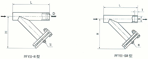 (4)Y型焊接锥管螺纹式(PFYII-R型)、承插焊式(PFYII-SW型)  (DN15—40,PN≤5.OMPa)