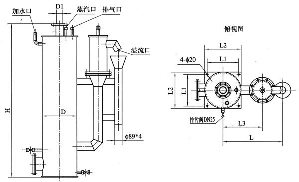 4、水封高度>2000mmH2O立式圆形排水器外形尺寸见图四、表四